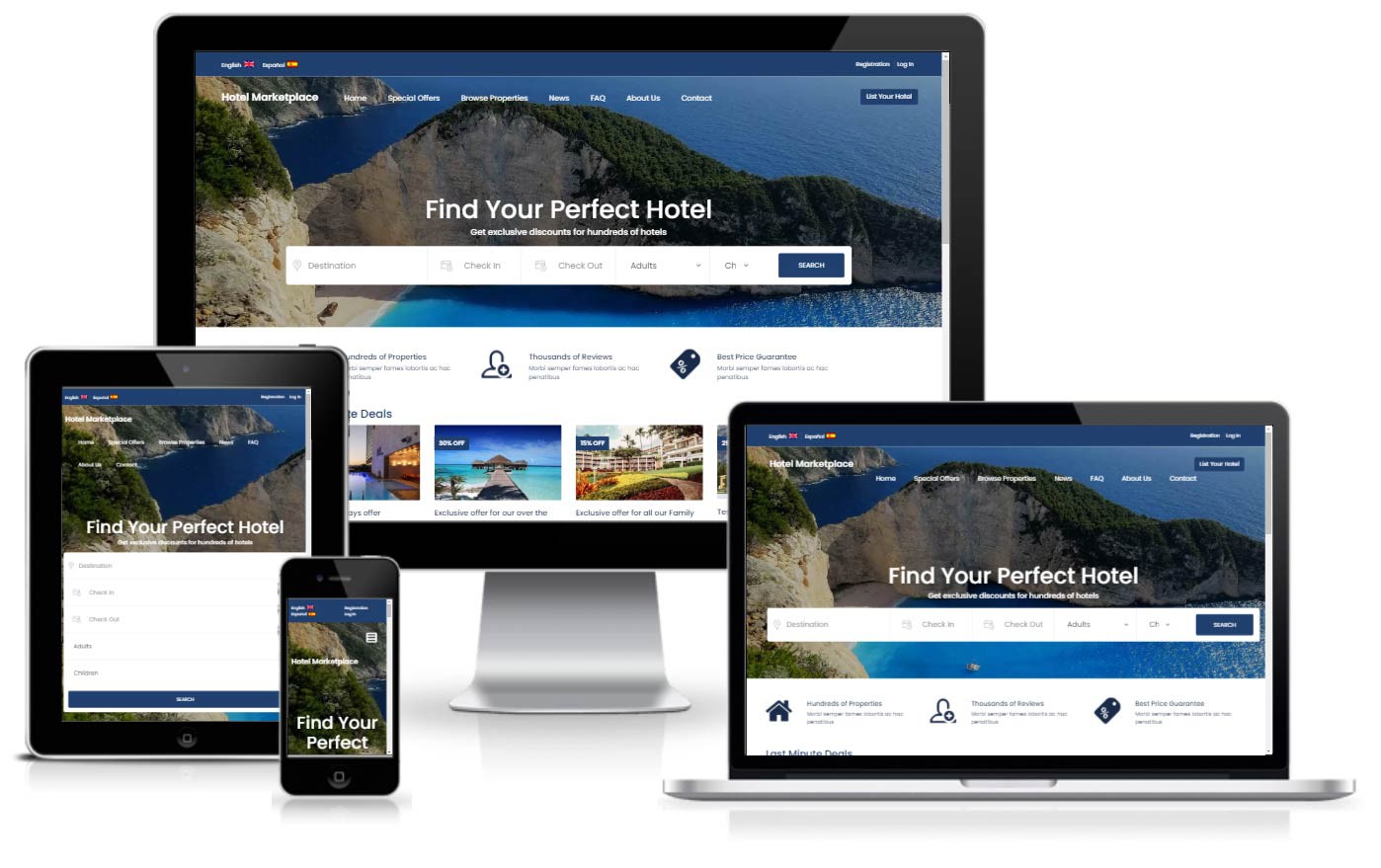 With our Hotel Marketplace solution, you can easily create an advanced multi-hotel booking website like the popular AirBNB and Booking.com. Hotel owners can register and list their hotels and then use their own administration panel to manage their properties and process their bookings. The script also comes with a powerful administration panel that allows the website administrator to manage the various settings users, website content and others. It's also provided with the full non-encrypted source codes, free installation and free technical support.