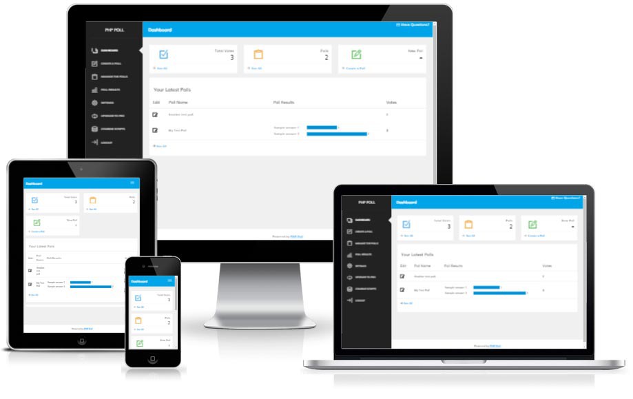 PHP Poll doesn't use a database - the information is stored in local XML files, making it lightweight, easy to install and quick to run. It also comes with a user-friendly and responsive administration panel that allows you to easily manage the various site configuration settings, create the online surveys and check the completed surveys and results.